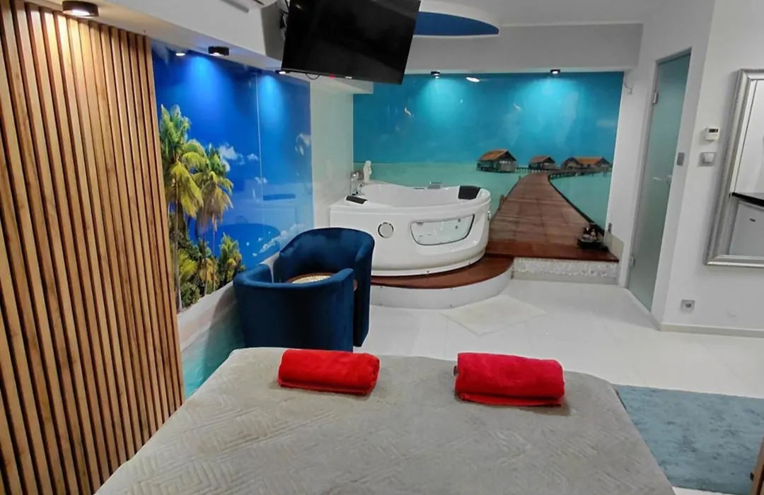 Os quartos em Jacuzzi Apartment Zen estão equipados com equipamentos para café e chá, TV, uma televisão de ecrã plano com canais por satélite. Os hóspedes podem usar chuveiro de abrir e casa de banho à parte sem suplemento adicional.